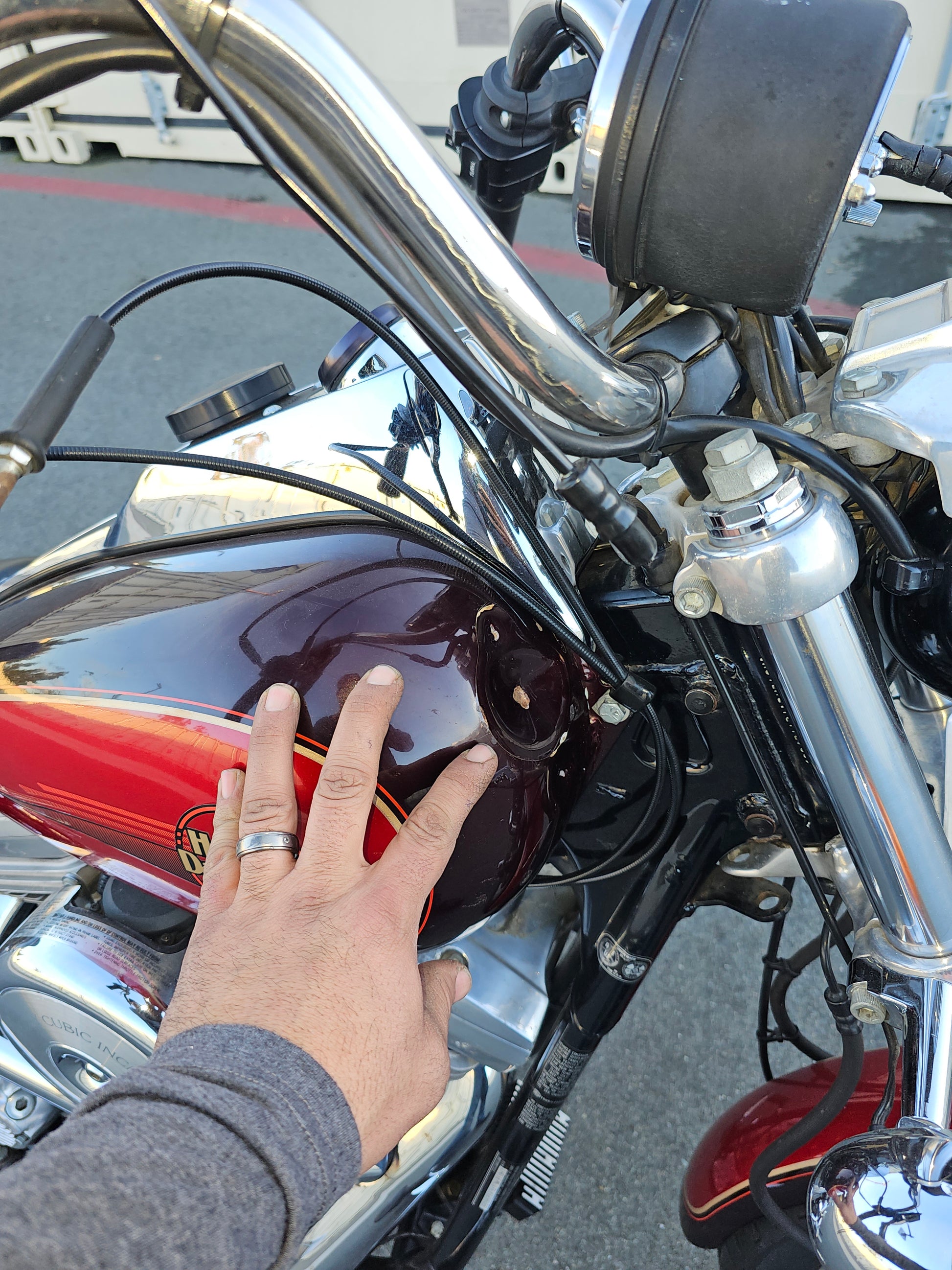 Dent in front right of gas tank